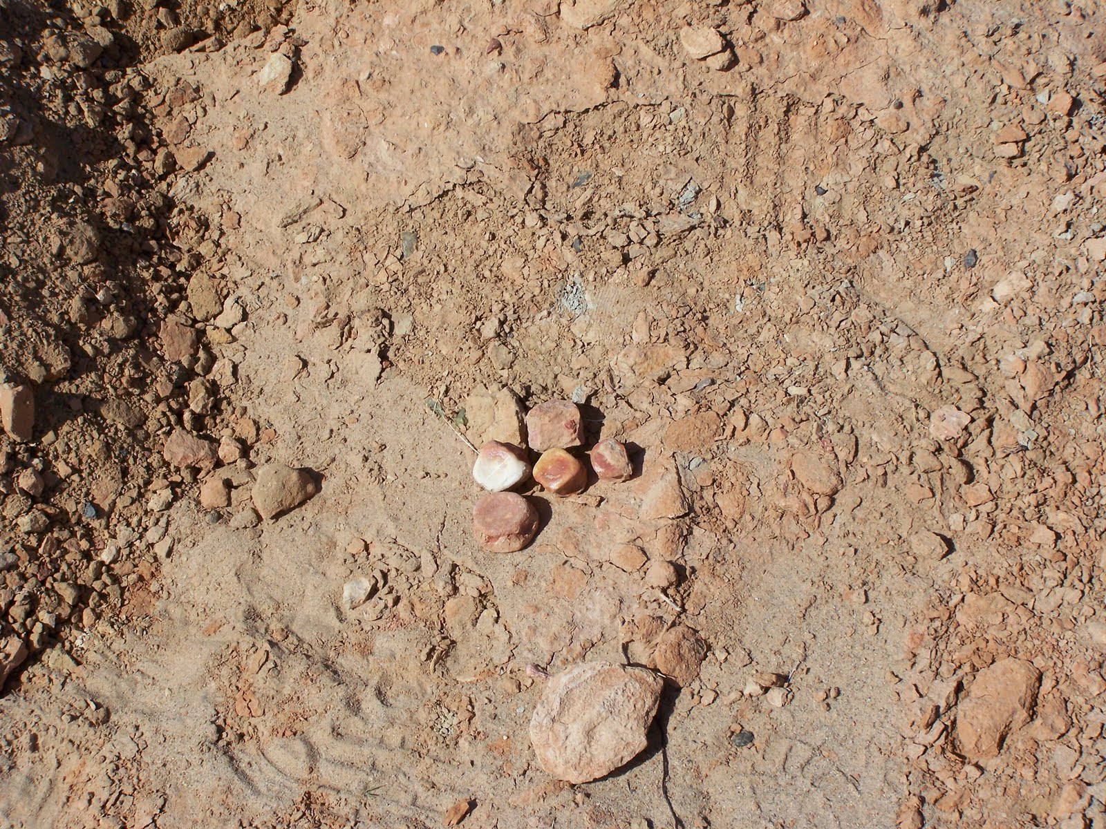 There were a few bones in the quarry. The Aleg Tag bones have a very rich red colour. This image shows a bunch of caudal centra that were lying around.