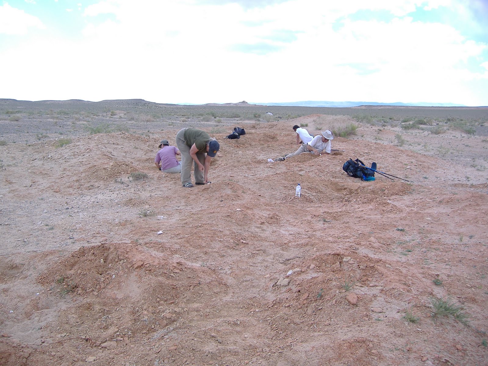 The ankylosaur bonebed Aleg Tag has produced many elements of Pinacosaurus, a small and unusual dinosaur. Unfortunately, the bonebed had been poached before we got there – you can see the small crater-like depressions where bones had been ripped up.