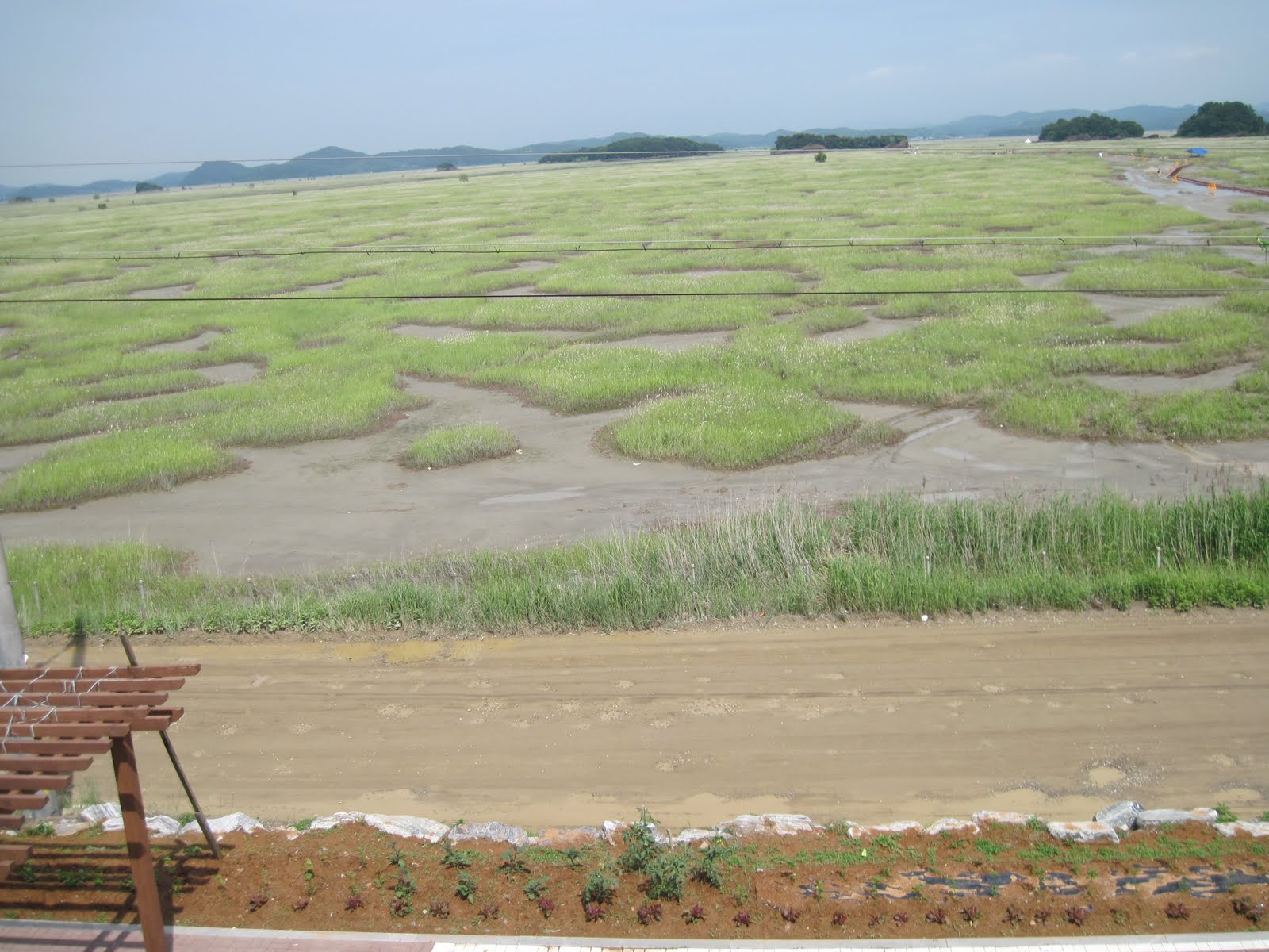 On the second floor you can step onto a balcony and take in the view. The lab is located in a marshy area. On the drive in there are lots of farms and rice paddies.