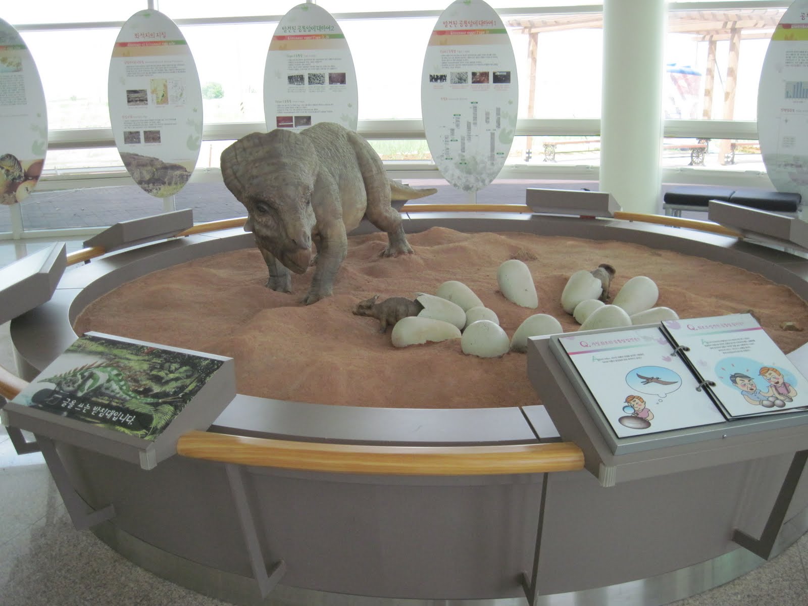 In the visitor’s centre, there are displays highlighting the fossil finds from Hwaseong. Many eggs and nests have been recovered from a Protoceratops-like dinosaur.