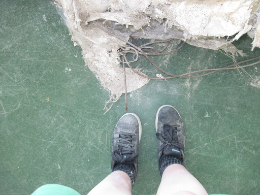 Perhaps black fuzzy sneakers were not the wisest choice for this sort of work…
