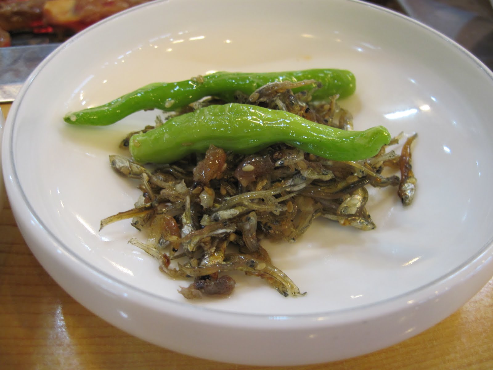 My favourite of the side dishes so far are the tiny fishes and squids! They are very salty and fishy tasting in the best of ways.