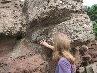 We were surprised that eggs could be preserved in such a coarse conglomerate. You can see how angular the clasts (rocks) are within the outcrop, which indicates that the pebbles and cobbles were not transported very far or for very long. We were thinking they were debris flows, but we will need to read up on the geology of the area. Weathering of the outcrops makes the rock look almost volcanic.