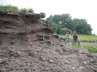 Scott and Robin ponder the taphonomy and geology of the egg-bearing strata. The outcrops all show multiple fining-upward packages and we saw eggs in at least two levels.