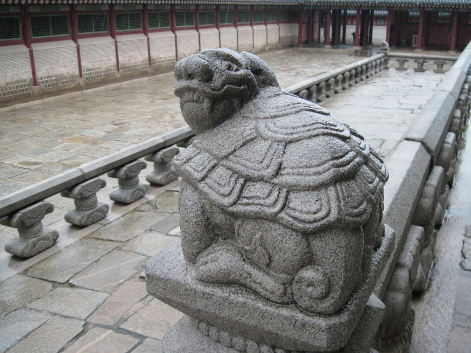 There are 36 stone figures around the main hall, Geungjeong-jeon. One of my favourites was this turtle monster, called a dusky warrior turtle. Perhaps an inspiration for Gamera?