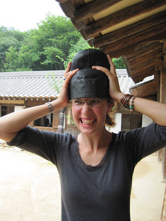 A popular Korean historical drama was filmed at the village, and there are costumes to try on for photos. I figure the hat fits pretty well.