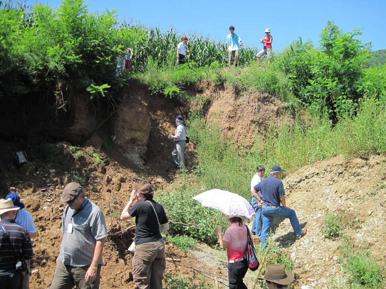 A particular treat of the trip was to visit the locality where Darwinopterus was collected, in the middle of a bunch of corn fields. It was interesting to see how Jehol rocks are typically quarried – the farmers find a productive level and then tunnel into the hillside. Unfortunately, this isn’t a very safe method for collecting.
