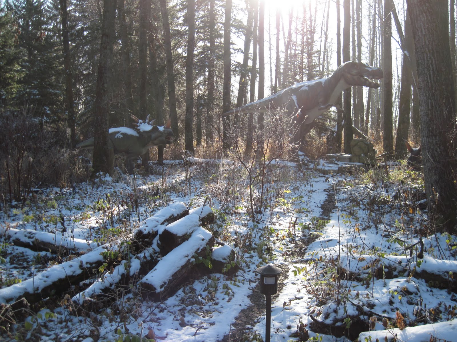 1. The name “Jurassic forest” is silly considering that the dinos depicted are late Cretaceous. Why not name it dinosaur forest, or “Dinosaur Park”–after the Canadian unit? Btw, I'm glad it doesn't snow so early here. 🙂