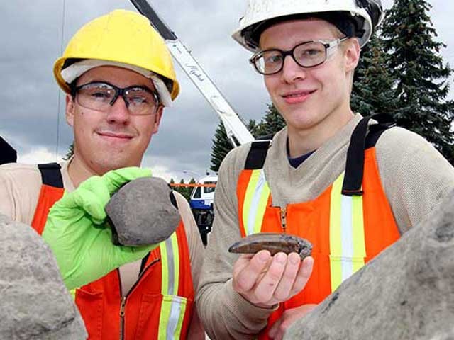 Overall, the material looks quite similar to a bonebed we’ve been excavating in the south of Edmonton for the last several years – dark black shales, and dark black bones. There’s a good chance there’s dinosaurs underneath us everywhere in Edmonton, but they’re covered up by trees and roads and buildings and such.