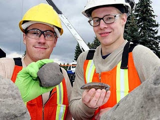 Last August, Edmonton city construction workers were digging a new sewer tunnel when they discovered dinosaur bones! My fellow ankylosaur worker Mike Burns, and Don Brinkman from the Royal Tyrrell Museum helped out at the site for about two weeks, excavating bits and pieces of Edmontosaurus and Albertosaurus. In particular, some awfully nice Albertosaurus teeth were found.