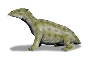 This unusual bleb of rock is actually a tooth from a very strange type of animal called a desmostylian, and this species is called Cornwallius. There’s nothing really like desmostylians today. They’re related to proboscideans (elephants) and sirenians (manatees), but look more like hippos crossed with sea lions. They lacked flippers but lived an aquatic lifestyle. Here’s Wikipedia’s interpretation of what they looked like: