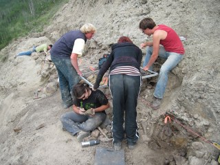 Here’s a few more shots from the University of Alberta’s fieldwork at the Wapiti River bonebed near Grande Prairie. Fieldwork wrapped up on Friday and the fossils are now at the U of A awaiting preparation.