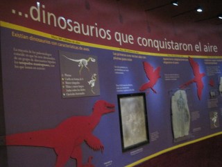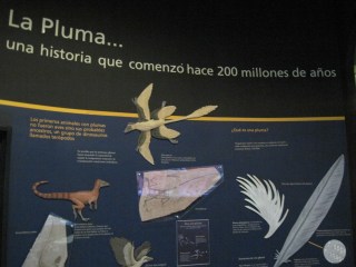 After finishing up with the dinosaur hall at the Buenos Aires natural history museum, I was pleasantly surprised to find more dinosaurs when I headed upstairs. I can’t recall a time where I’ve actually seen dinosaurs in the bird gallery – often the dinosaur story ends with the origin of birds, but when the birds are on display it’s usually more about extant bird diversity and conservation. So it was really nice to see the origin of birds explained right at the very beginning of this exhibit.