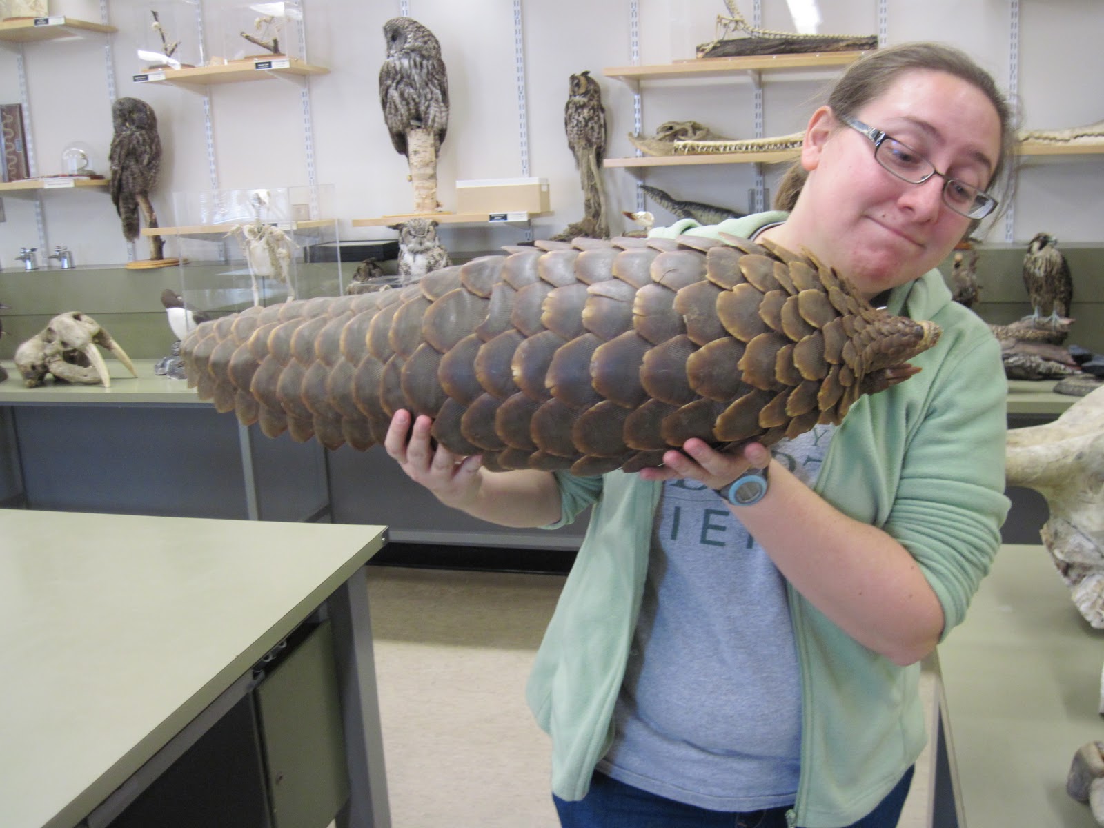 For our dragon station, we used animals that had dragon-like qualities, since no one animal is the direct inspiration for the dragon, and because many cultures have their own dragon mythology. We used a cast of the ankylosaur Minotaurasaurus (which looks like the Hungarian Horntail), a komodo dragon skull (a real life dragon!), and our wonderful taxidermied ground pangolin. Not a single person who visited our table had ever seen or heard of a pangolin, so it was a really great opportunity to show off this unusual mammal.