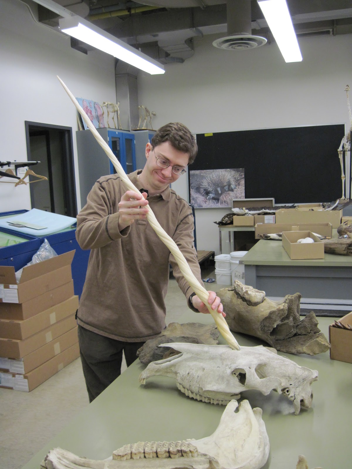 Scott makes a unicorn! The narwhal tusk was a big draw, and also allowed us to talk about conservation and how we acquire zoological specimens.