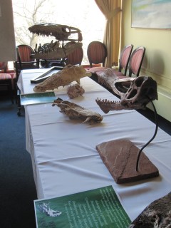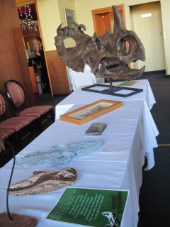 Finally, a few weeks ago I helped organize the annual U of A Paleo Gala, an event hosted by Dr. Michael Caldwell, which raises funds for specimen acquisition, research, and grad student scholarships. It’s a fancy dinner held at our faculty club, and the grad students put up posters and show off new specimens and research. There are silent and live auction items much like at SVP, and you can usually count on a song or two by John Acorn, the Nature Nut.