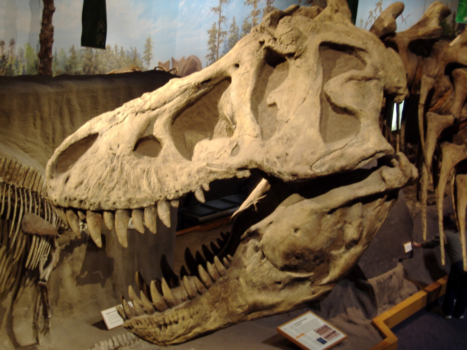 Tyrannosaurus rex skull at the Royal Tyrrell Museum in Drumheller, Alberta.