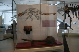 The ROM has one of the more extensive collections of ankylosaurid material, and a little bit is on display. The skull on display is the very nice ROM 1930, and the tail club, ROM 788, at 59 cm wide, is the second largest tail club referred to Euoplocephalus. I CT scanned this club before it was put on display, for my research on ankylosaur tail club swinging and impacts, and it only just fit through the aperture of the scanner.