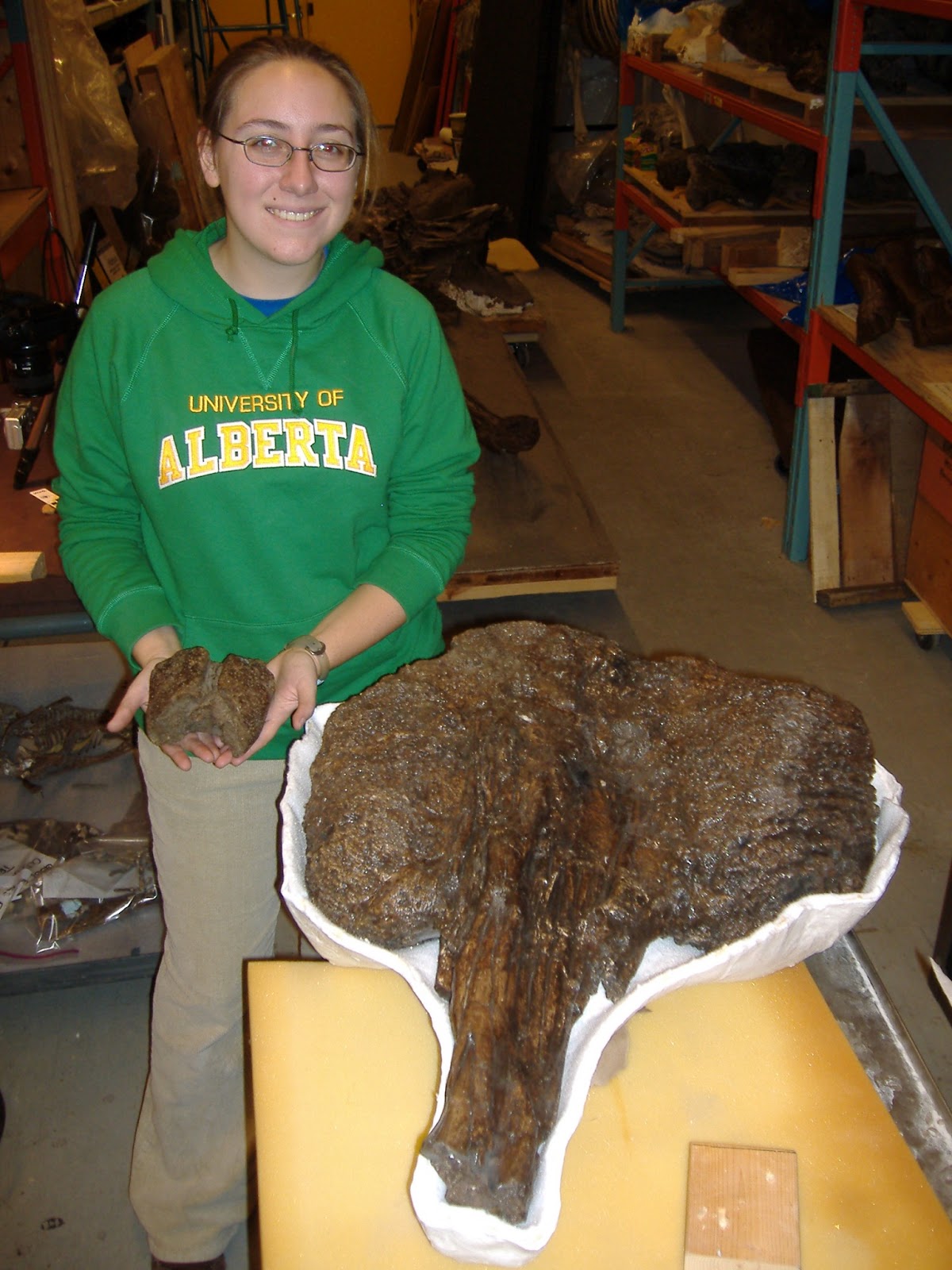 Wow, 2007 was a long time ago. Anyway, here’s me at the Royal Ontario Museum holding the smallest tail club referred to Euoplocephalus, ROM 7761, and standing next to the largest, ROM 788. I CT scanned ROM 788 for my finite element analysis research, and you can now see it on display in the ROM’s dinosaur gallery.