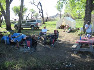 We have a pretty nice setup in camp – two large canvas tents are our supply tent and kitchen tent (and also work as a shelter during rainy days). A fire pit and grill are available for cooking when there aren’t fire bans, and the river is our bathtub (although a bit silty).
