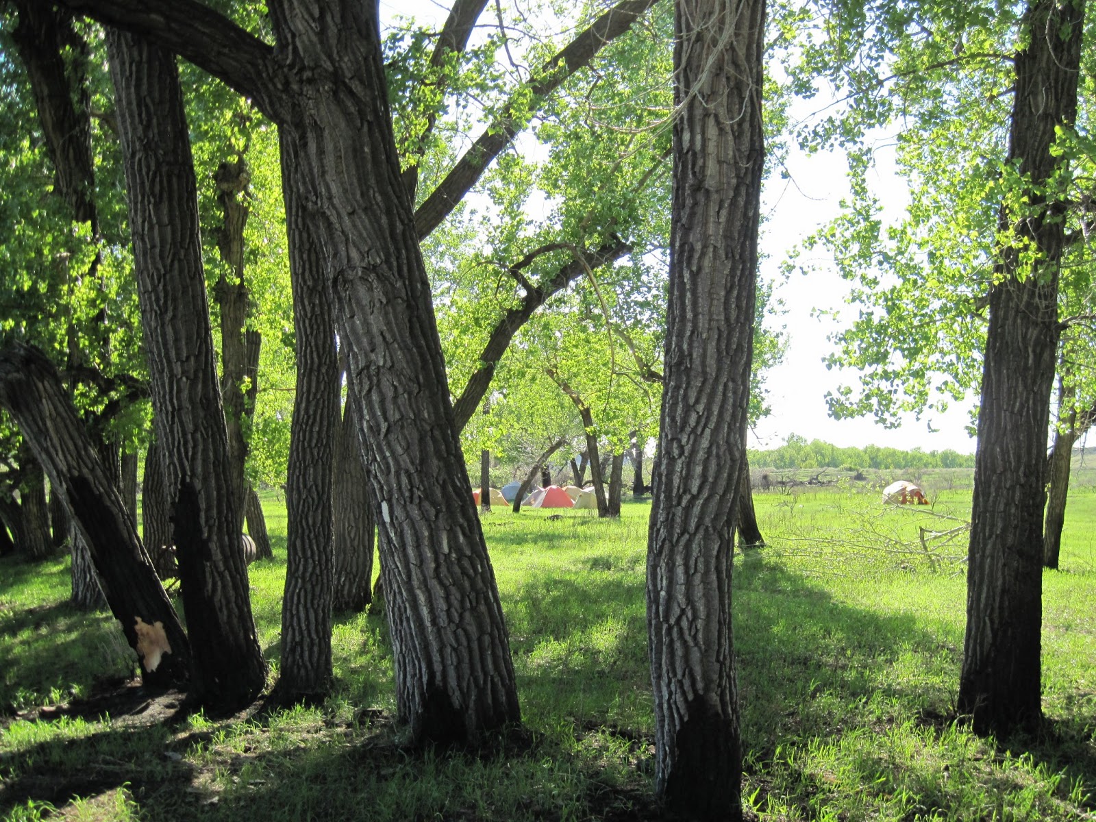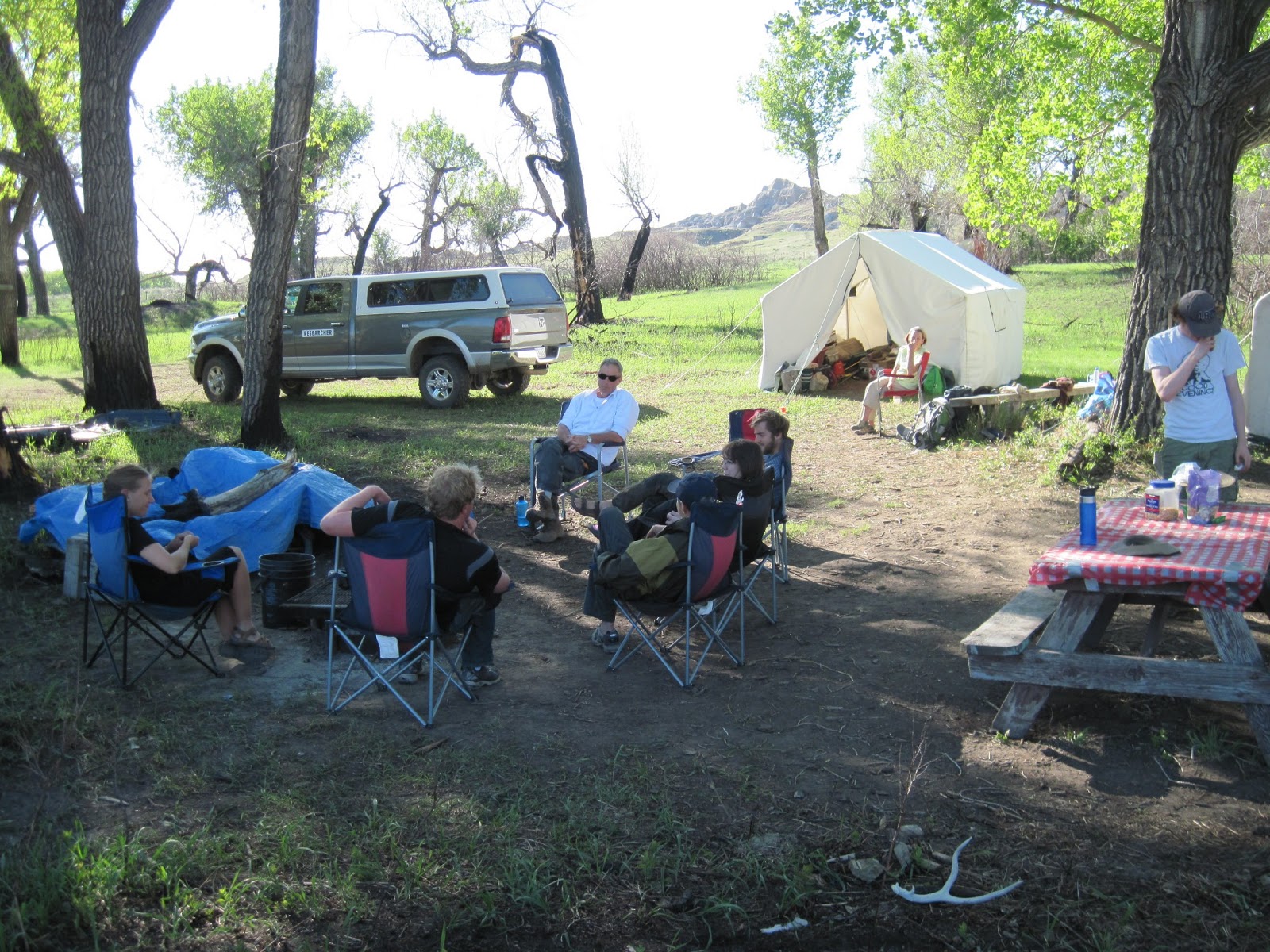 A few weeks before we arrived in camp, a huge fire burnt away most of the sage bushes and other scrub at ground level. You can see scorch marks on the cottonwood trees in this photo. Windy days meant we all got pretty dirty from blowing ash.