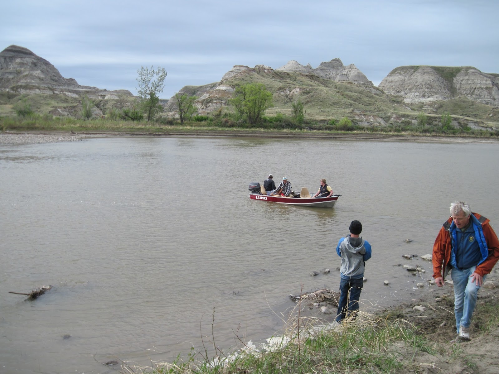 We headed across the river from Happy Jack’s to check out some possible locations for the Scolosaurus quarry. I was very grateful to be out with Darren Tanke, who has been researching the location of the quarry for quite some time, and Phil Currie. Both of them know Dinosaur Provincial Park like the back of their hands (well, their own hands).