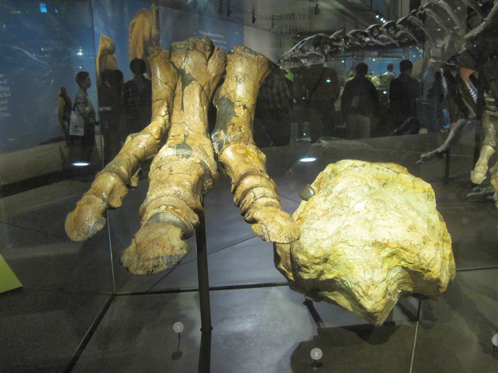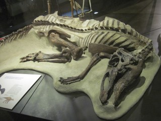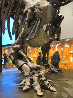 The centrepiece of the dinosaur galleries must be the Tyrannosaurus trio – juvenile, subadult, and adult – feeding on a carcass. There’s a nice display to the side (but behind this photo) showing the preserved elements used to reconstruct the three skulls.