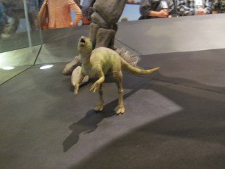 Fruitadens protests the fact that it stands no taller than the hand of a sauropod. Always nice to see heterodontosaurids on display!