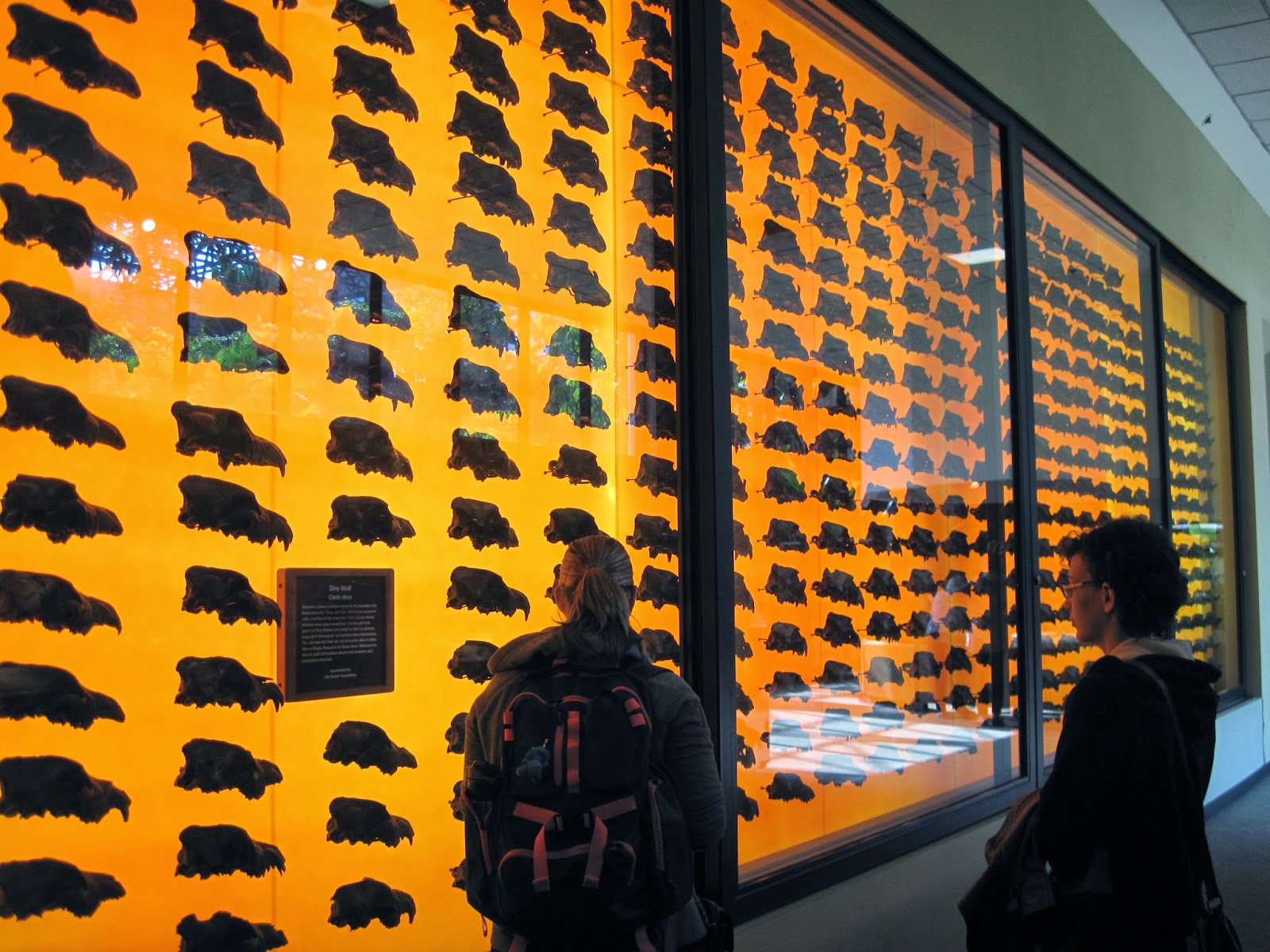 So many specimens have been collected from the tar seeps that the museum has over 400 dire wolf skulls on display – out of more than 1500 in their collections! It makes for an impressive Wall of Stuff. I am envious of their actual non-negligible sample size!