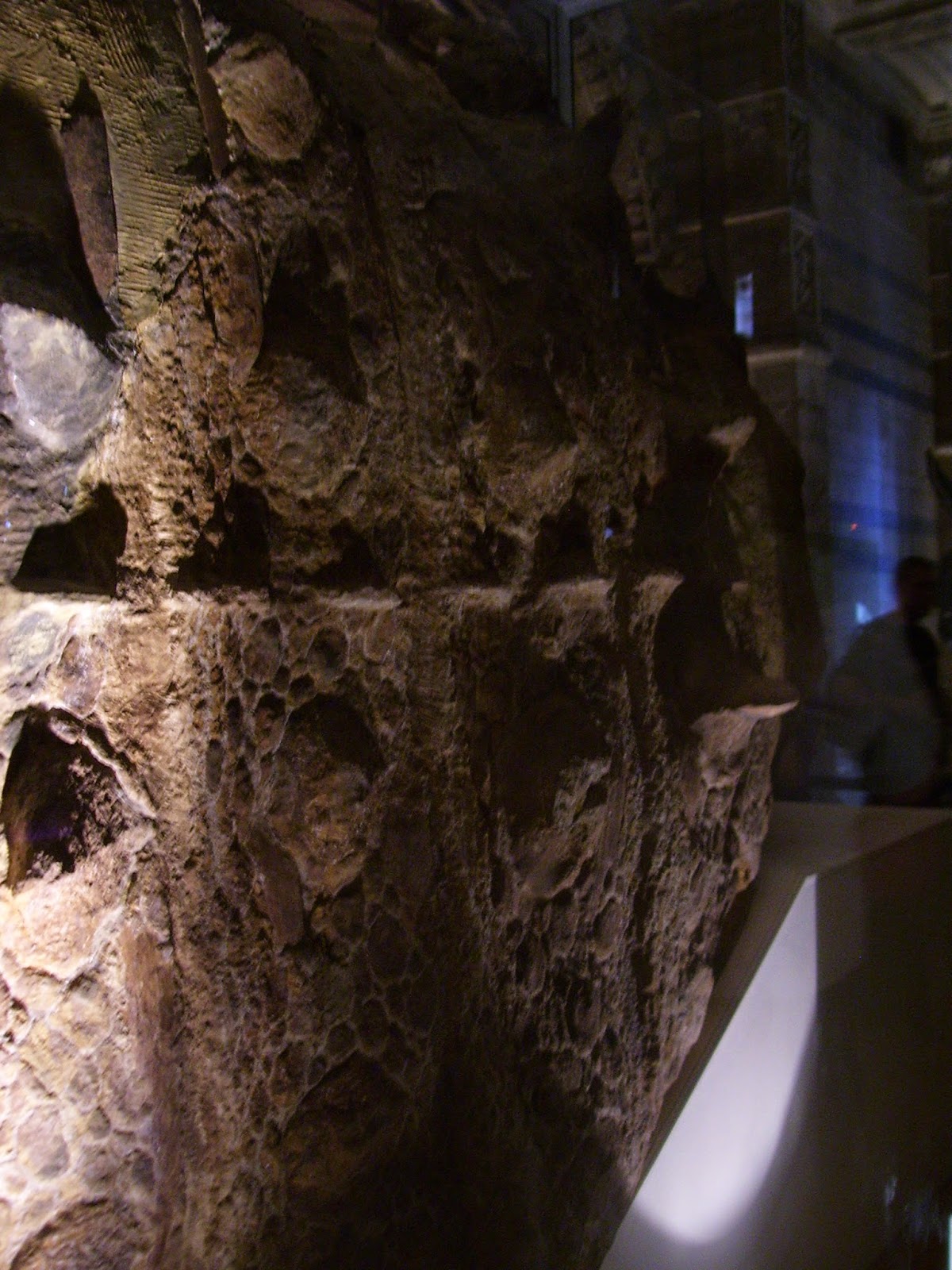 Another super cool thing about ROM 813 is that it preserves the epidermal covering of an osteoderm, and it is the only example of this in an ankylosaur that I know about. In the photo below, the smooth side of the osteoderm is the epidermal scale, and the rough side of the osteoderm is the true bony part of the osteoderm.