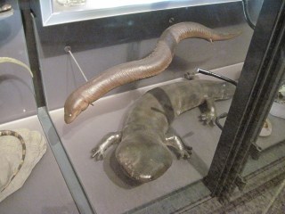 Walls of Stuff often reward close inspection. I learned about a new kind of large amphibian, the amphiuma! (The amphiuma’s the one with the highly reduced legs; I’ve now forgotten what the other big salamander was!)
