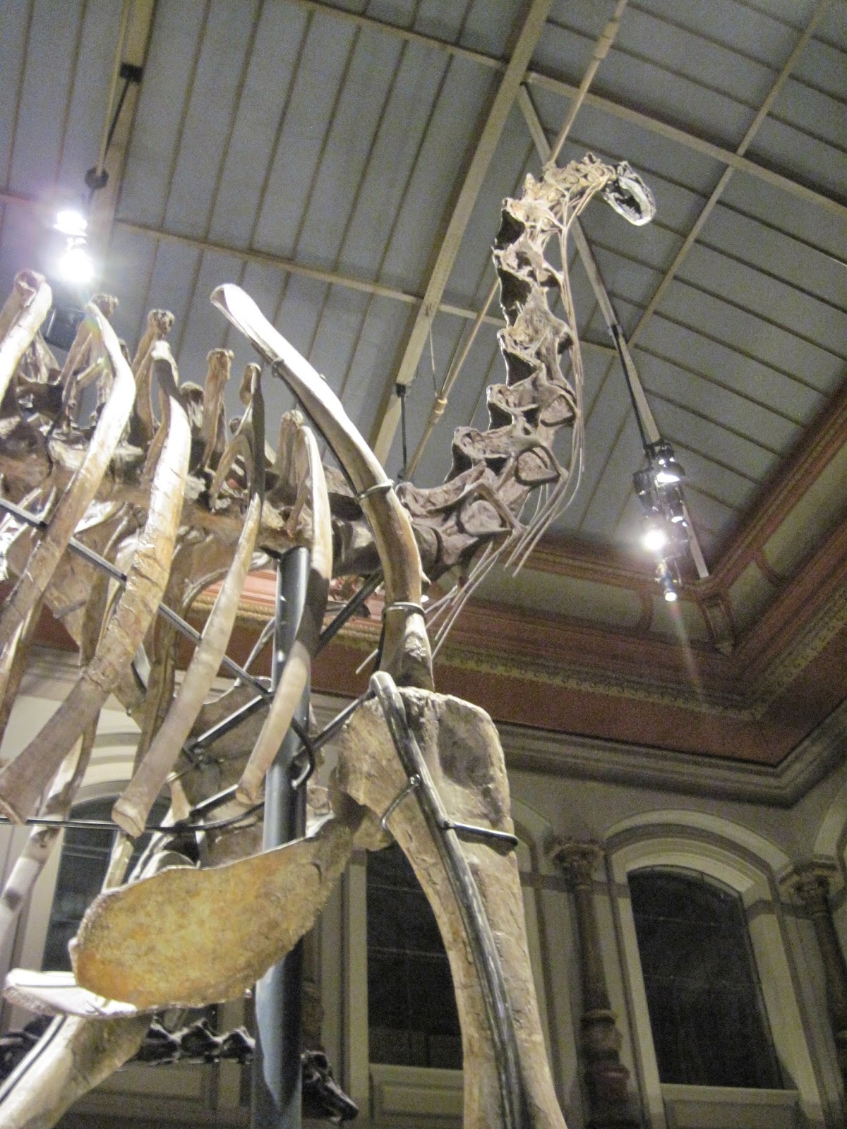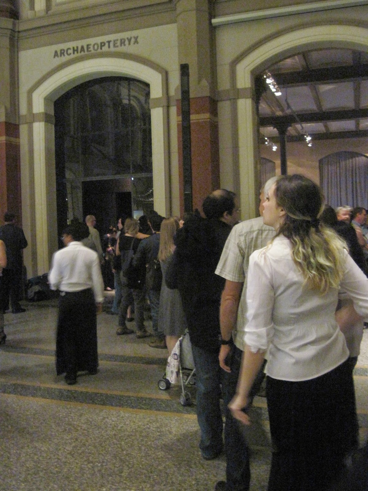 Greetings from Deutschland! I’ve returned from the Society of Vertebrate Paleontology annual meeting in Berlin. Here’s a couple of snapshots from the Museum fur Naturkunde, where the welcome reception was held last week. Giraffatitan (nee Brachiosaurus) brancai supervised the shenanigans in the main entrance hall.