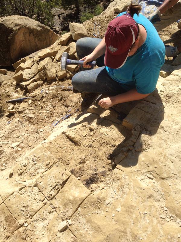 For the second week of our field expedition, we drove from Utah to a site near Rangely, Colorado, to help the Colorado Northwestern Community College with a specimen poking out of a cliff. We’ve shifted into the Upper Cretaceous here, and are working in the Mesaverde Formation. There’s not very much known about the dinosaurs from this formation, so hopefully this will shed some more light on the dinosaurs in this region!