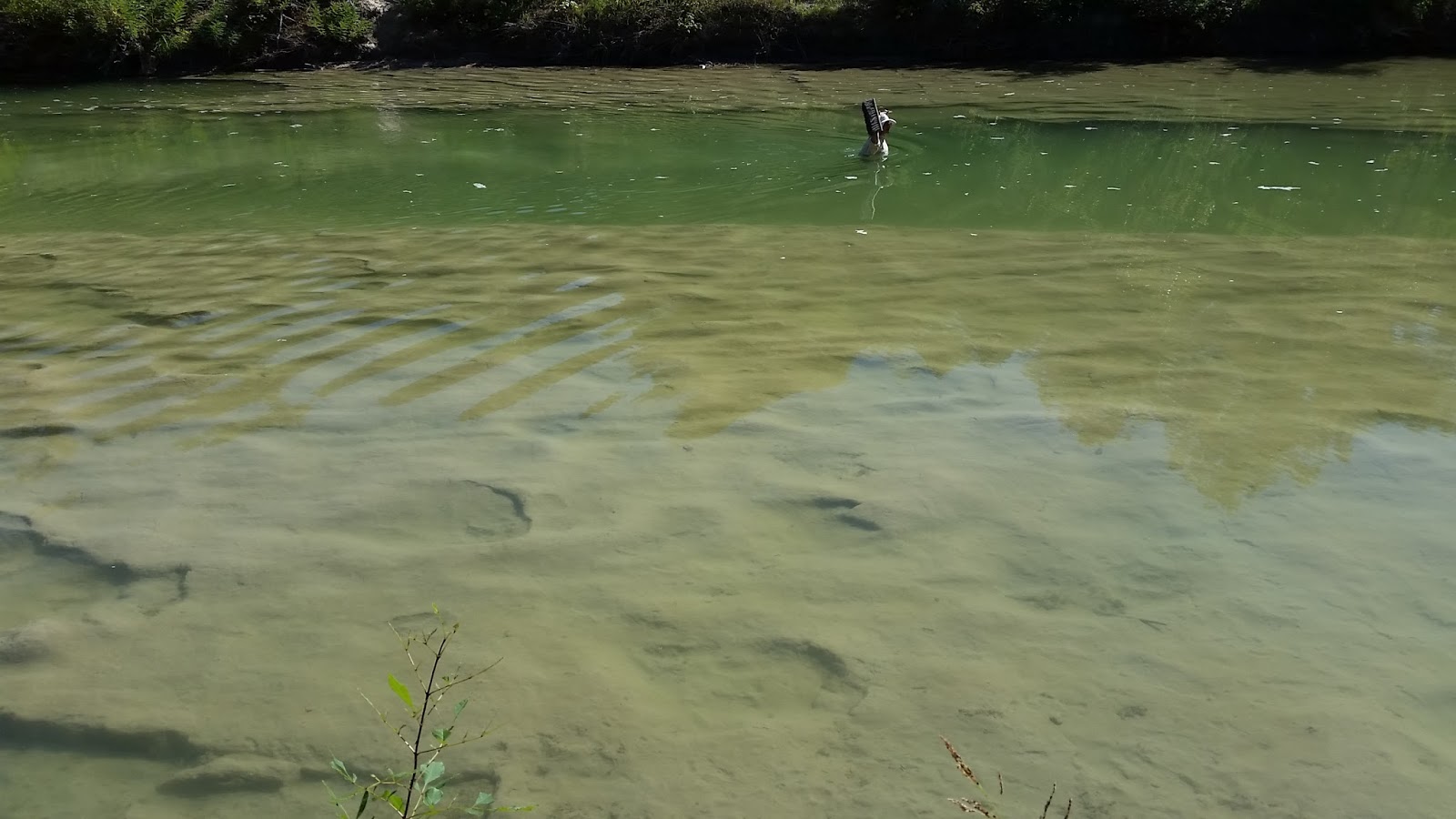 Most of us waded in and took turns sweeping slime out of the footprints and standing in them.