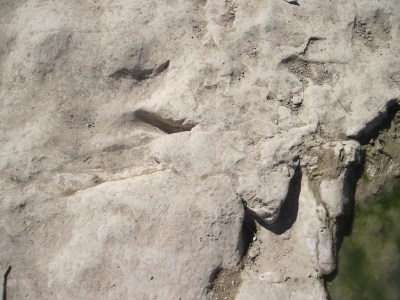 The trackways are in the Albian aged Glen Rose Formation, and the rocks represent a lagoon or shallow marine environment. I guess dinosaurs liked the occasional day at the beach, as well! There are two kinds of trackmakers here, and here’s one of them – a large theropod, probably something like Acrocanthosaurus.