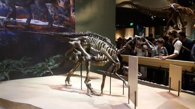 One of the most interesting design elements is the visible escalators poking out the side of the building. Back in 2013 at the Korea-Mongolia International Dinosaur Project Symposium, Tony Fiorillo gave a really interesting presentation on the design of this museum, and talked about how a lot of people never make it off the first floor of a museum, which is also usually where the dinosaurs are. So at the Perot Museum, the dinosaurs are on the top floor and you are immediately shuttled upstairs (it’s actually kind of hard to *not* go to the top floor first!), and then you work your way down the museum to exit.