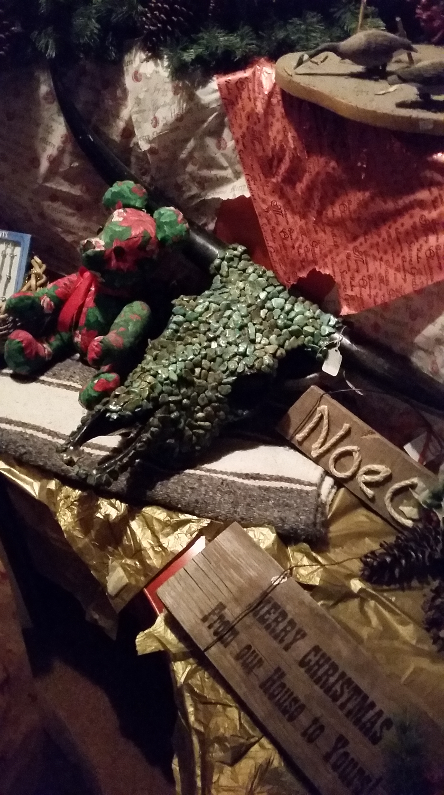An overnight stop in Springerville, Arizona was at another motel with a cool gift shop with this weird Christmas cow skull.