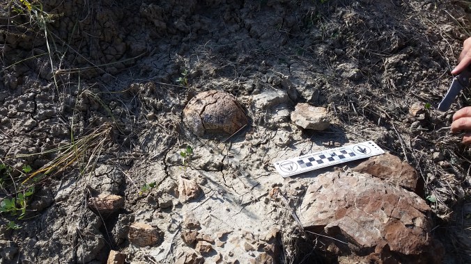 Elsewhere in the Hell Creek, Wendy Sloboda found an eggshell site, much to Jade Simon’s delight.
