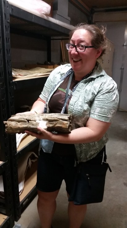 I got a chance to see something really special – one of only two published tail specimens for Ankylosaurus! The other is the tail club on display at the AMNH in New York, and because that one is mounted behind glass, this is the first one I’ve been able to touch and observe closely. I’m holding a chunk of the handle, the unique vertebrae that make up the stiff part of the tail club. It was a fitting moment for me, since I was giving a talk about Ankylosaurus just a few hours after getting to see this specimen!