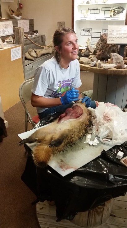 My favourite series of events going on at the museum during the Shindig were the live taxidermy demonstrations happening right out in the exhibits! These garnered a lot of interest from the visitors, and, based on the popularity of the Brain Scoop’s videos of animal dissections, show that people are interested in anatomy and curious about how our bodies are put together and work. We’ve got to find ways to do more of this kind of demonstration in museums!