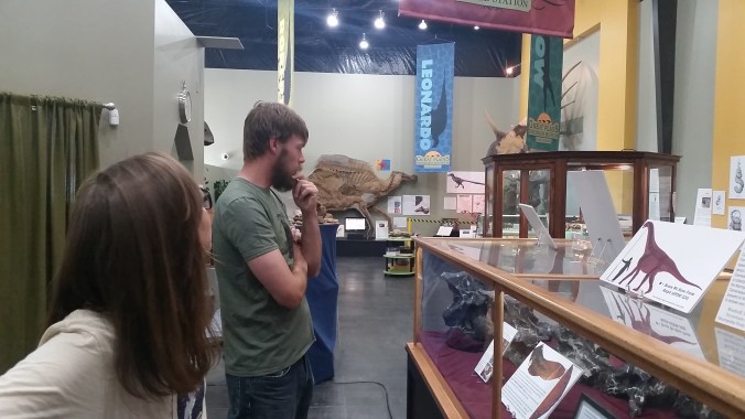 The Great Plains Dinosaur Museum is home to several other beautiful and famous fossils – “Leonardo” the Brachylophosaurus (currently on a long-term exhibition loan to the Children’s Museum of Indianapolis), although a cast can be found here), and “Roberta” the Brachylophosaurus, shown here. Roberta lacks the skin and soft tissues of Leonardo, but is an incredibly complete, mostly articulated skeleton that’s just amazing to see in person.