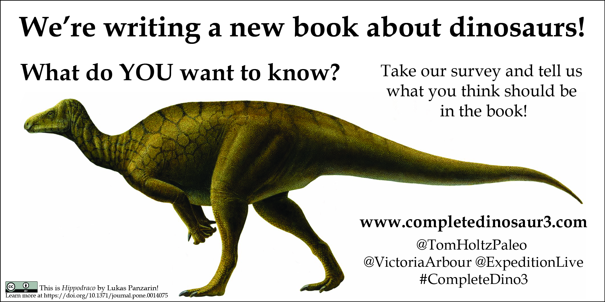 In 2016 my collaborators Lindsay Zanno, Tom Holtz and I launched a crowdsourcing campaign for input from future readers of the third edition of The Complete Dinosaur (forthcoming from Indiana University Press).