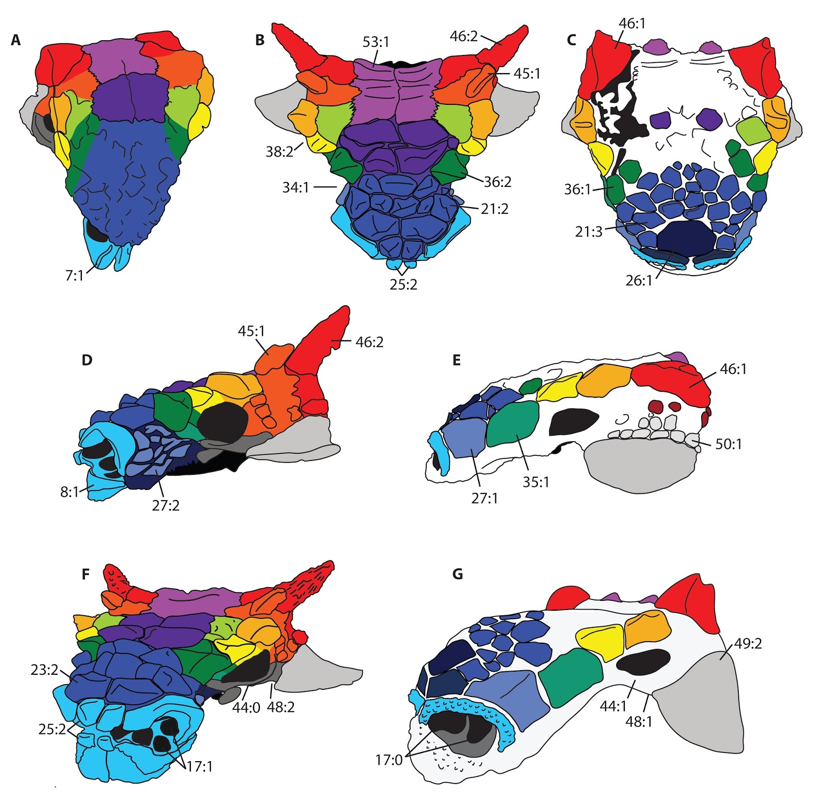 Here’s a sampling of some of the new characters from the supplementary file that goes along with the paper. Long live rainbow ankylosaur skulls. Continue reading